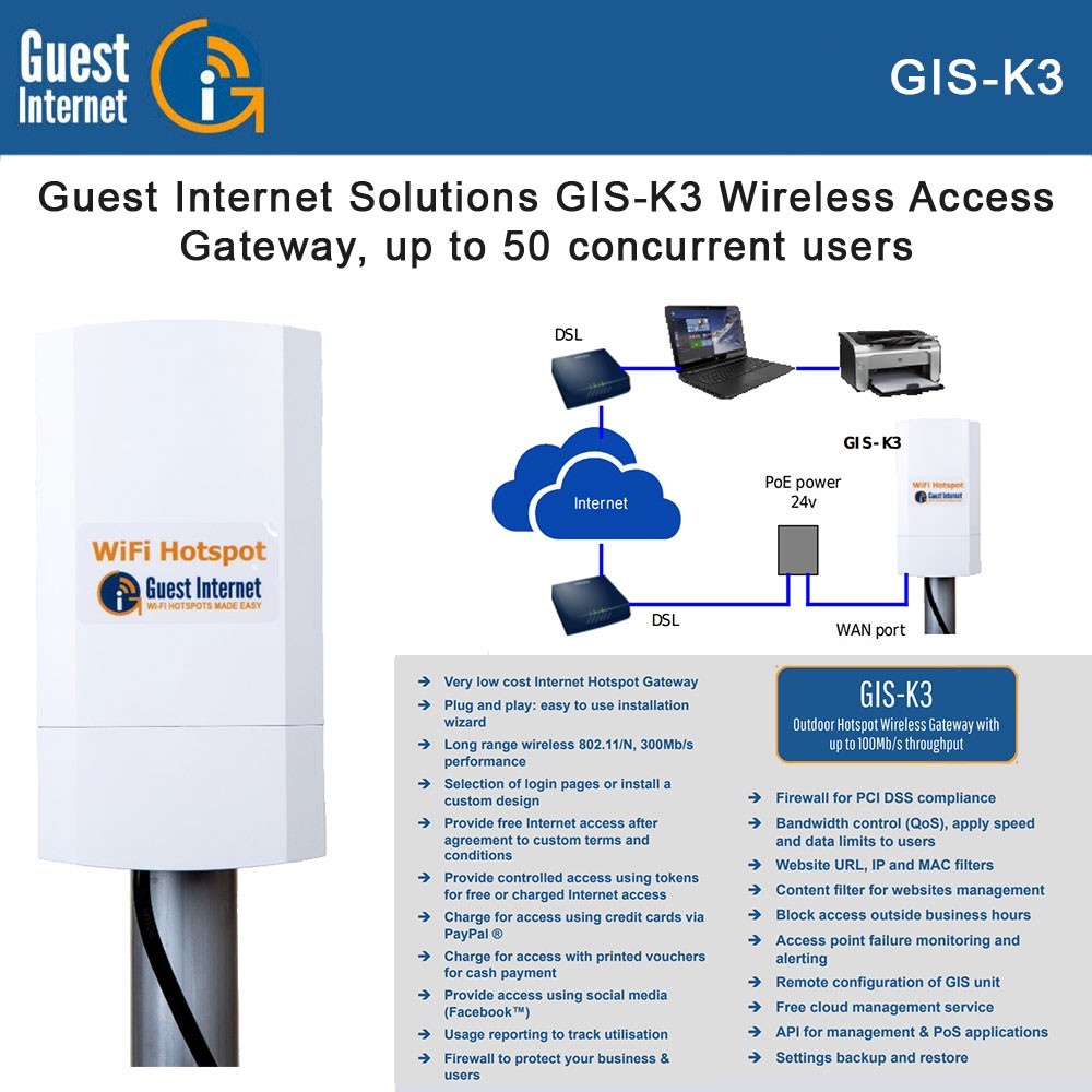 The GIS-K3 Hotspot Gateway is a simple plug and play installation, requiring no specialist knowledge.